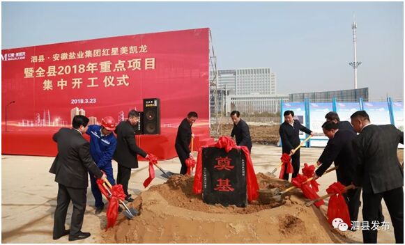3月23日上午,泗縣縣委縣政府在徽鹽·虹都府項(xiàng)目紅星美凱龍地塊隆重舉行泗縣·安徽鹽業(yè)集團(tuán)紅星美凱龍暨全縣2018年重點(diǎn)項(xiàng)目集中儀式。縣領(lǐng)導(dǎo)張志強(qiáng)、王法立、趙朝法、龐壯、趙明等四大班子成員、安徽鹽業(yè)集團(tuán)徽鹽地產(chǎn)領(lǐng)導(dǎo)程群、泗縣項(xiàng)目全體人員及縣直有關(guān)單位、40個(gè)集中開(kāi)工項(xiàng)目負(fù)責(zé)人等出席了奠基儀式。