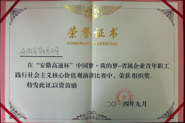 9月26日下午,由安徽省關(guān)心下一代工作委員會(huì)、安徽省國資系統(tǒng)關(guān)心下一代工作委員會(huì)主辦的“安徽高速杯”中國夢(mèng)·我的夢(mèng)——省屬企業(yè)青年職工踐行社會(huì)主義核心價(jià)值觀演講比賽決賽,在安徽省高速集團(tuán)隆重舉行。省公司在此次比賽中榮獲集體組織獎(jiǎng),代表省公司參加比賽的廬江縣公司職工柯君憑借雄厚的實(shí)力和精彩的發(fā)揮榮獲個(gè)人一等獎(jiǎng)。